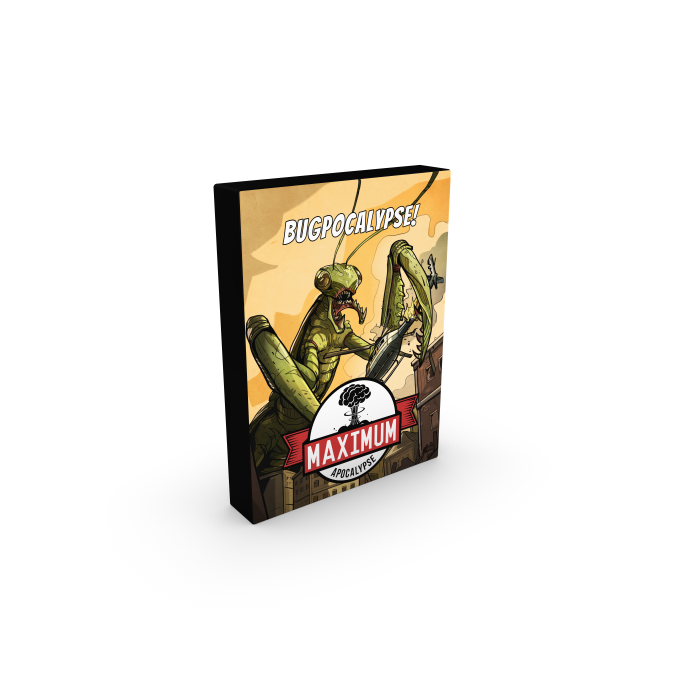 Maximum Apocalypse: Bugpocalypse introduces the giant bug apocalypse deck of 40 cards. These bugs tend to swarm meaning that every time a new monster spawns, you have the chance of having to draw another one. Lucky for you most of these bugs are pretty squishy but keep a look out for large armored beetles and scorpions that can crush a tank!